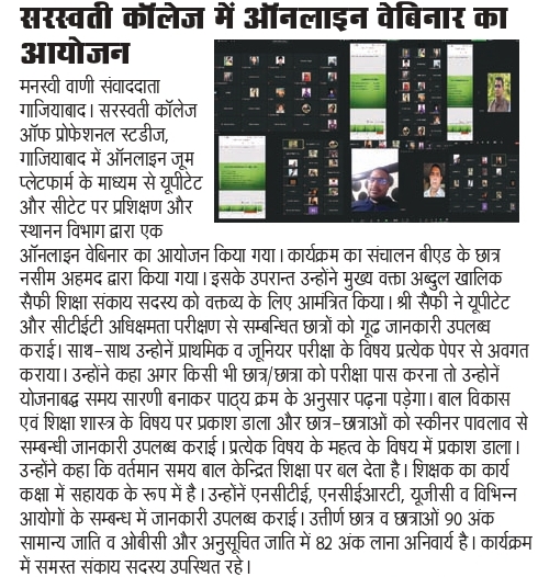 Affiliated to CCS University, Meerut, NAAC A++ Accredited & Recognized by NCTE